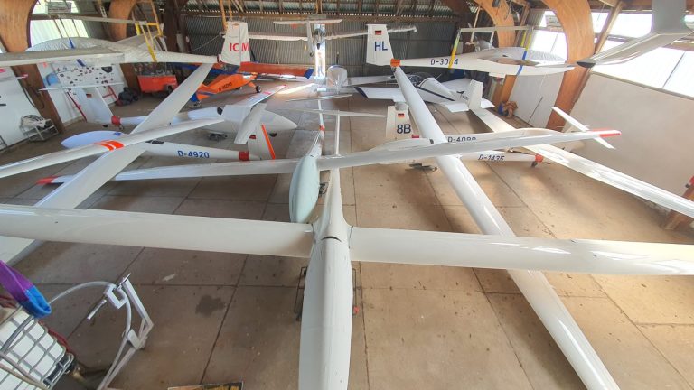 So wird man zum wahren Schachtelkünstler alle Flugzeuge mit übereinanderragenden Flügeln einzuräumen. Die Einsitzer finden zum Teil sogar ihren Platz unter der Hallendecke.